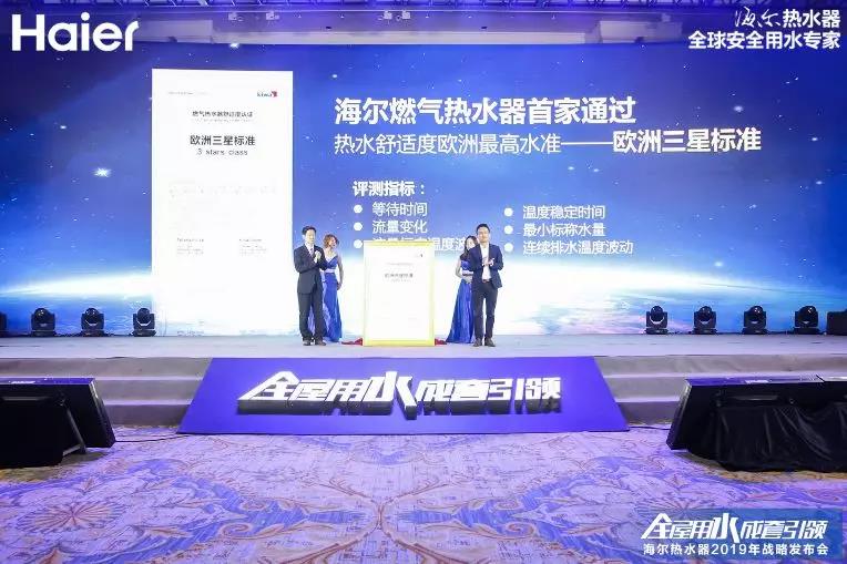 10月11日,以“全屋用水成套引领”为主题的海尔热水器2019年战略发布会在上海举行,作为全屋用水5大解决方案之一的燃气热水器,海尔旗下的高端产品卡萨帝燃气热水器CH3通过“欧洲三星标准”认证,Kiwa集团总监邓挺先生现场颁发了证书,这也是中国首次在燃气热水器方面通过此认证。