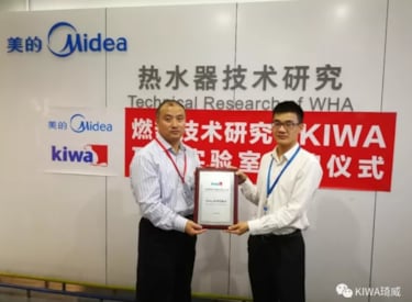 仪式由美的集团热水器事业部燃热技术研究经理梁国荣主持,Kiwa集团中国区总经理陈国民、商务总监邓挺、商务经理司马慧及美的公司实验室主管张洪周等人参加了授牌仪式。