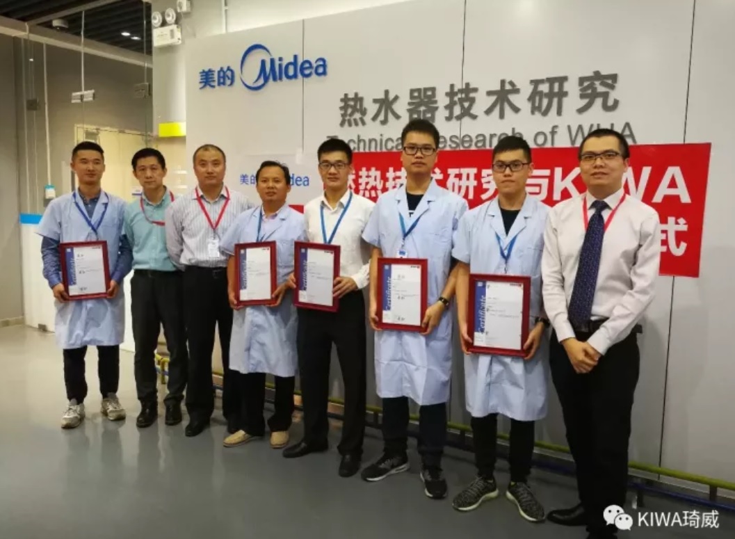 Kiwa为Midea燃热技术研究实验室的第一批通过Kiwa考核的人员梁国荣、张洪周、苏铭森、吴家健、吴子阳,颁发了资格证书。
