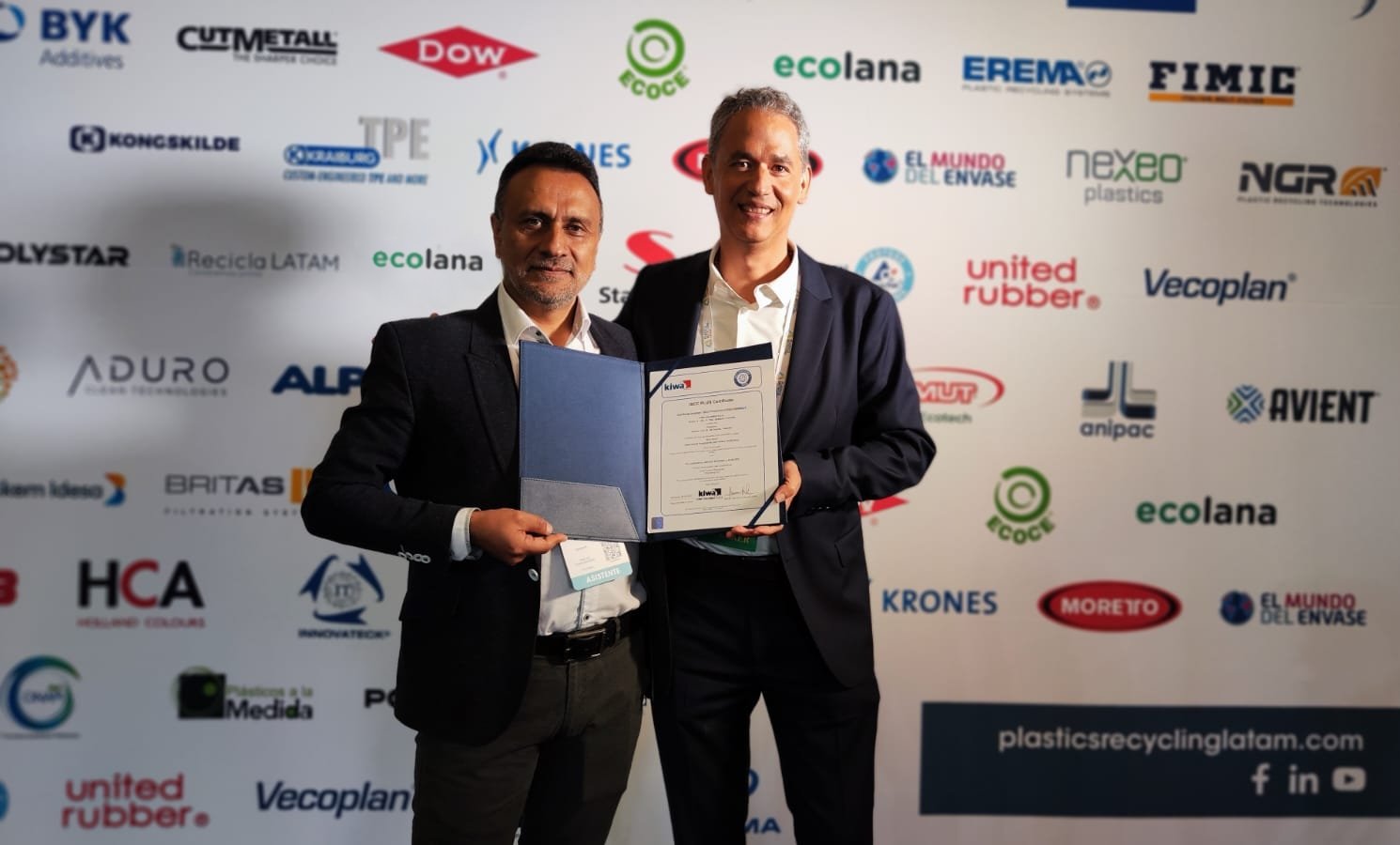 En el marco del congreso Plastics Recycling LATAM efectuado en Ciudad de México, los días 10 y 11 de septiembre 2024, Ricardo Estrada, vicepresidente de sostenibilidad y abastecimiento de global en Grupo Plastilene recibió de manos de Alejandro Franco, Gerente de Kiwa Colombia la certificación ISCC PLUS.