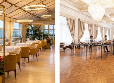 The certified environments: the two-Michelin-starred restaurant "Il Piccolo Principe" on the left and the Breakfast Room on the right.