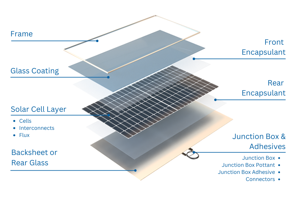 These materials all play a role in protecting the PV module from environmental elements and ensuring that all components are firmly bonded together and resistant to corrosion: