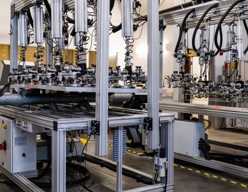 MSS is comprised of four tests in sequence: static mechanical load (SML), dynamic mechanical load (DML), thermal cycling, and humidity freeze. The mechanical loading steps create and propagate cracks in susceptible modules, and then power loss is induced through the environmental stress of thermal cycling and humidity freeze. Historically, the SML included three rounds of one hour of downward force and one hour of upward force at 2,400 Pa with the module mounted using traditional two-rail fixed tilt mounting methods. Starting for all PQPs initiated in November 2023, if the module frame has 400 mm mounting holes, the MSS modules will be mounted using Nextracker’s torque tube and mounting rails, attached to the module using M6 hardware at the module’s 400 mm mounting holes. If the module frame does not have 400 mm mounting holes, the module will be mounted via SnapNRack’s RL Universal Mount, with clamps attached on the short-side frame within 200 mm of the corner. Once mounted, a reduced test load of ±1800 Pa is used for tracker-mount or corner-mount. The subsequent DML test comprises 1,000 cycles of oscillating positive-negative loading at ±1,000 Pa, using the same mounting as SML. After load testing modules are placed in an environmental chamber to undergo 50 thermal cycles (-40°C to +85°C) followed by 10 cycles of humidity freeze (+85°C and 85% relative humidity, then a rapid drop to -40°C). |