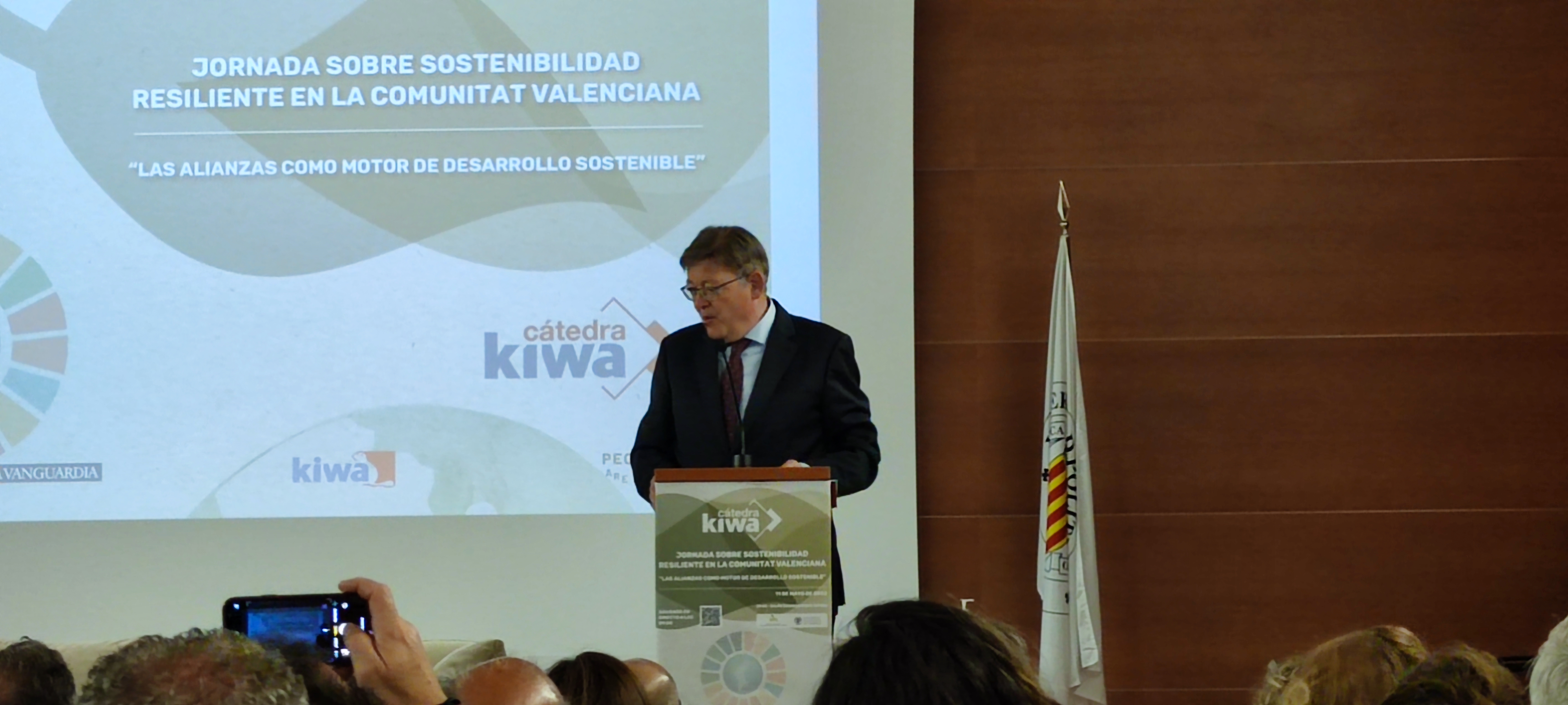 La Cátedra Kiwa, adscrita a la Universitat Politècnica de València (UPV) a través de la Escuela Técnica Superior de Ingeniería Agronómica y del Medio Natural (ETSIAMN), ha reunido esta mañana a responsables públicos, con el President de la Generalitat Valenciana, Ximo Puig, a la cabeza, altos cargos y directivos de organizaciones agroalimentarias y a la comunidad universitaria, para consensuar maneras efectivas y eficientes de implantar en la sociedad los mandatos de los Objetivos de Desarrollo Sostenible (ODS). Es importante aunar esfuerzos y tejer alianzas para lograr una Comunitat Valenciana más sostenible y que ofrezca a la ciudadanía un mejor modo de vida, más avanzado y saludable. Y se hace imprescindible encontrar un método válido para hacerlo, partiendo de las experiencias individuales y la cooperación. Yendo de lo particular a lo universal y logrando soluciones adecuadas para todos los territorios. Así lo ha entendido el President, que ha querido respaldar esta iniciativa con su presencia. Ximo Puig ha expresado tajante que, en materia de sostenibilidad, no hay alternativa. “Se trata de sumar de manera inteligente, ha señalado. No tenemos otro planeta. No hay plan B para el planeta”. Para el Molt Honorable la gran cuestión actual es alcanzar la soberanía energética, pasando “de ser consumidores de combustibles fósiles” a “importar energía limpia”. Por su parte, el Rector de la UPV, José Capilla, ha realzado el compromiso de las universidades, con la UPV a la cabeza, en la consecución de las metas de desarrollo sostenible. “Lo tenemos que hacer porque de aquí salen los profesionales que, en el futuro, van a llevar las riendas de la sociedad”, ha añadido.