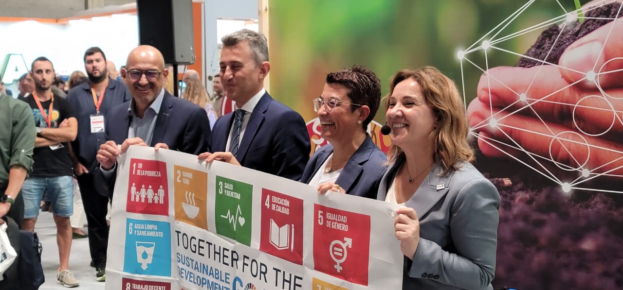 El presidente de Anecoop, Alejandro Monzón, junto con la directora de Calidad y Sostenibilidad de Anecoop, Mari Carmen Morales y la directora de proyectos de Kiwa R+D+i, Rosa Valenzuela, han presentado, en el marco de la feria Fruit Attraction, un proyecto pionero en el sector, el Observatorio de Sostenibilidad de Anecoop, que bajo el lema Mide, evalúa, actúa, tiene como objetivo establecer un marco de referencia para medir, de forma correcta y precisa, los impactos y mejoras que Anecoop y sus socios pueden tener sobre la sostenibilidad del sistema agroalimentario, así como la cuantificación y repercusión social, económica y ambiental que tienen sus acciones.