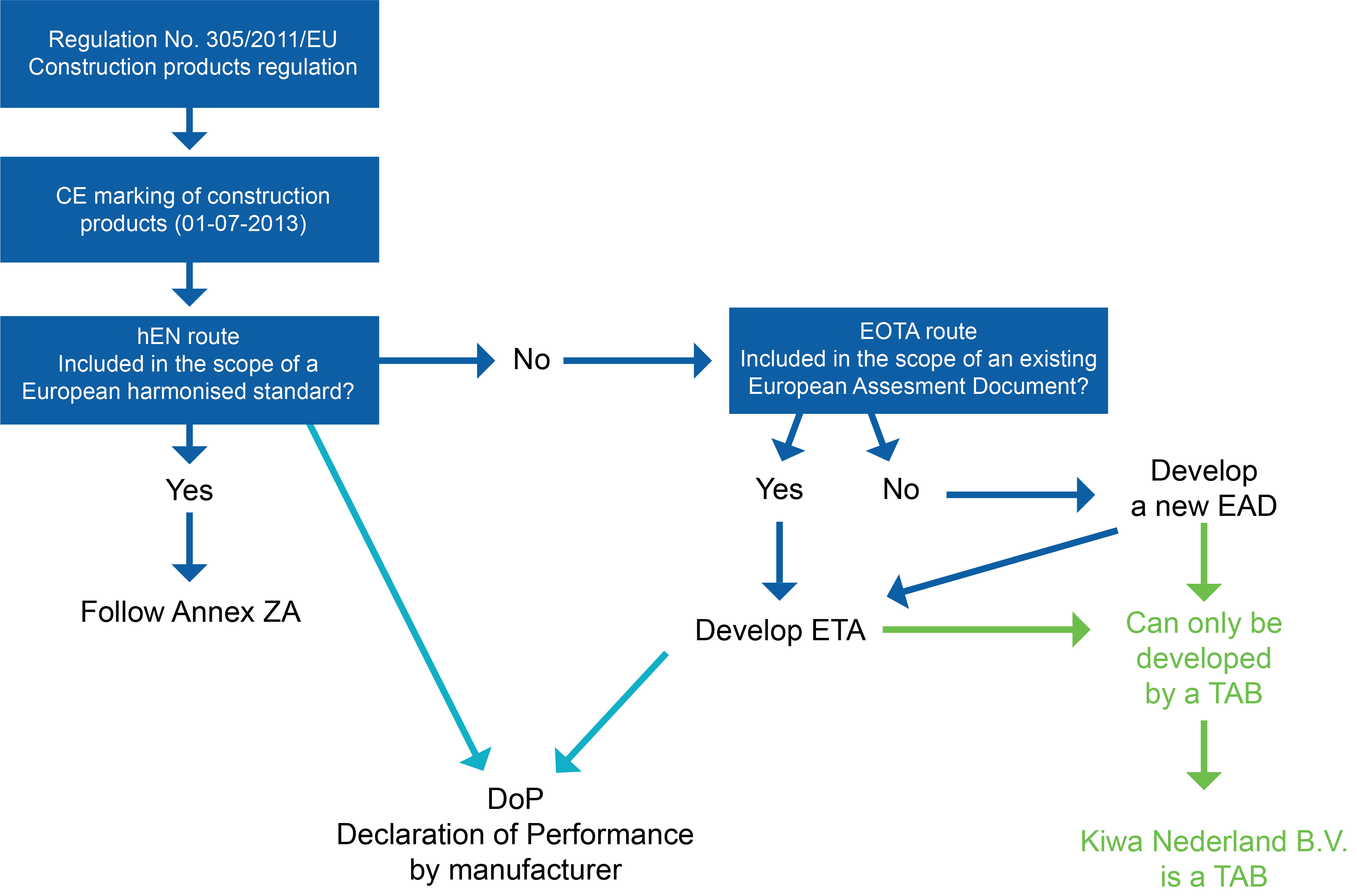 Volgens de Europese Verordening bouwproducten nr. 305/2011/EU (CPR), die van kracht is sinds 1 juli 2013, moeten bouwproducten die vallen onder een geharmoniseerde Europese norm zijn voorzien van een CE-markering en bijbehorende prestatieverklaring (DoP). Dit geldt voor alle landen binnen de Europese Economische Ruimte (EER, alle EU-landen plus Noorwegen, IJsland en Liechtenstein). Indien deze bouwproducten niet voorzien worden van CE-markering en een DoP, mogen deze niet worden verhandeld en niet worden toegepast in bouwwerken binnen de EER.
