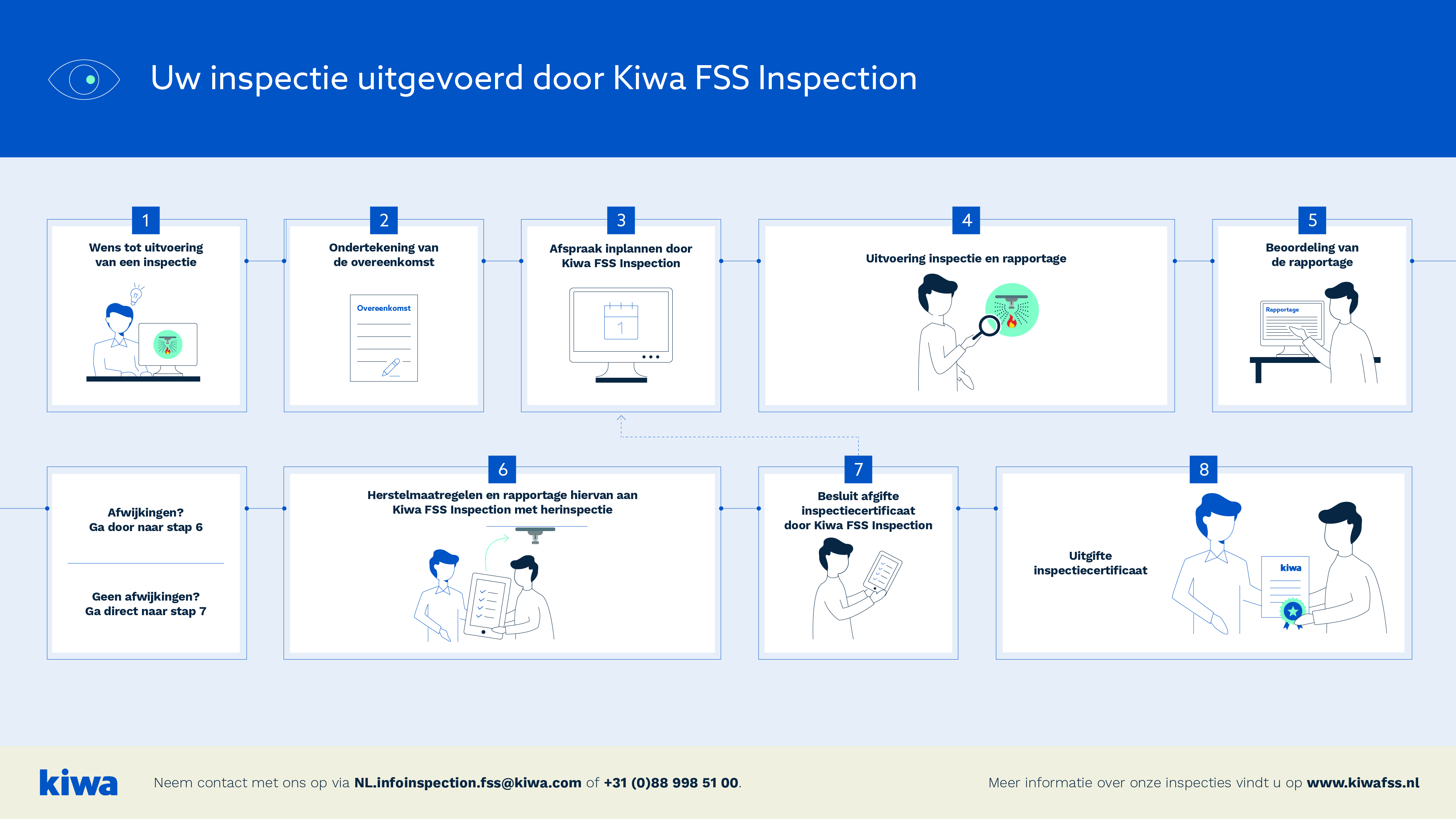 Kiwa Fire Safety & Security (Kiwa FSS) is een toonaangevend TIC-bedrijf voor het Testen, Inspecteren en Certificeren van producten, installaties en bedrijven op het gebied van (brand)veiligheid en beveiliging. Onze TIC-activiteiten zorgen voor kwaliteit, veiligheid, gezondheid, betrouwbaarheid en duurzaamheid. Daarnaast geven wij trainingen vanuit een volledig onafhankelijke, objectieve en integere positie.