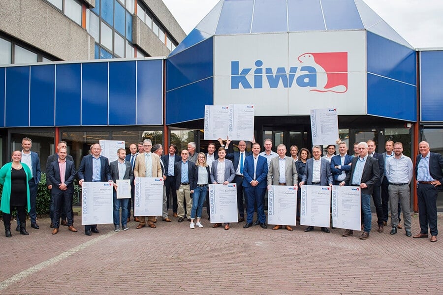 Kiwa reikte op 10 september de eerste certificaten uit in het kader van de nieuwe keuringseis KE 214 ‘Geschiktheid voor bijmenging tot en met 100% waterstofgas’. Deze keuringseis bevat eisen voor componenten die worden gebruikt in waterstofgasnetwerken. Negen fabrikanten ontvingen het KE 214 certificaat uit handen van Kiwa’s Ronald Karel en Bart Vogelzang, voorzitter van het College van Deskundigen.