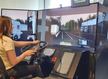 Tijdens InfraTech hebben wij op onze stand een simulator staan. Aan de hand van displays wordt rondom de bestuurder een realistisch beeld geprojecteerd. Vanuit de cabine kunt u dan de wegmetingen uitvoeren. Een unieke kans!