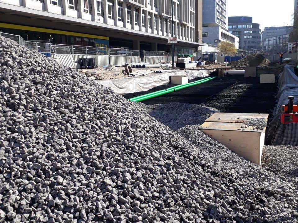 Diverse Nederlandse gemeenten hebben problemen met de binnenstedelijke waterhuishouding. Zij proberen dit op te lossen door toepassing van innovatieve waterbergende constructies. Zo ook de gemeente Eindhoven, die samen met het bedrijf AquaBASE en de hoofdaannemer Strabag een mogelijke oplossing realiseert. In de toekomst moet 1800 kuub aan overtollig regenwater uit een deel van de binnenstad via normale straatkolken en geperforeerde infiltratiebuizen tijdelijk worden geborgen in de fundering van de ontsluitingsweg de Vestdijk.