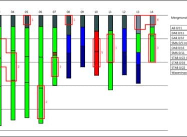 Onze standaard rapportages van het onderzoek voor CROW publicatie 210 kunnen voortaan worden aangevuld met een overzichtelijke grafische weergave van de boorprofielen (zie fig. 1). Op verzoek bieden wij u deze nieuwe gebruikersvriendelijke, grafische weergave van de opbouw van asfaltkernen inclusief de aanwezige fluorescentie.