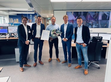 v.l.n.r. Mischa van der Geld (Kiwa NCP), Mike Broens (Trigion), Melvin Doorn (Trigion), Jan Bokma (Kiwa NCP), Mathijs de Vaal (Protify)