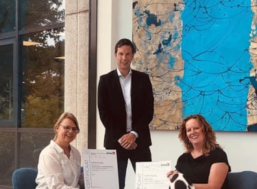Eerder dit jaar nam Kiwa van Stichting Bedrijfscertificering- en Examinering (SBCE) de toetsing over van het kwaliteitskeurmerk voor Kinder-, jongeren- en gezinsprofessionals. Kiwa’s Bob Schakenbos reikte de eerste twee Kiwa-certificaten op vrijdag 24 september 2021 uit aan Liselot Wessel van Springboon Kinder- en gezinsprofessionals en Tineke Nieuwenhuis van Helibel Coaching in Nieuwegein.