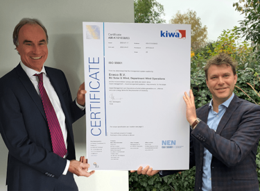 Eneco heeft door Kiwa het ISO 55001-certificaat voor Asset Management uitgereikt gekregen. Hiermee verankert het energiebedrijf haar doelstellingen op het gebied van duurzaamheid in haar bedrijfsvoering door middel van duurzaam beheerde productiemiddelen. Kiwa heeft het certificaat vandaag uitgereikt aan Cees de Haan, directeur van de businessunit Wind & Solar van Eneco.