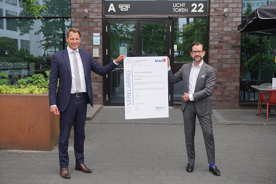 Inntel Hotels voert als eerste hotelgroep in Nederland het keurmerk van certificeringsbedrijf Kiwa voor de toetsing van de Covid-19 maatregelen die zij heeft getroffen. Als resultaat van deze certificering kan Inntel Hotels aantonen dat alle noodzakelijke stappen heeft gezet om de kans op besmetting met het coronavirus te beperken.