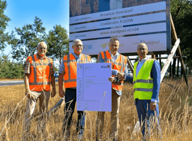 Berto Dekker en Berry Mullink van Van den Bosch Beton ontvingen uit handen van Jan Klapwijk van Kiwa het eerste zogeheten Kiwa Covenant voor geopolymeertechnologie.