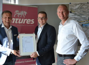 Om de verworven accreditatie niet ongemerkt voorbij te laten gaan, werd het eerste VCA 2017 certificaat op 3 augustus overhandigd aan de directie van Intures, Ron Spanjaard en Ronald Schavemaker, op het kantoor in Velsen-Noord.