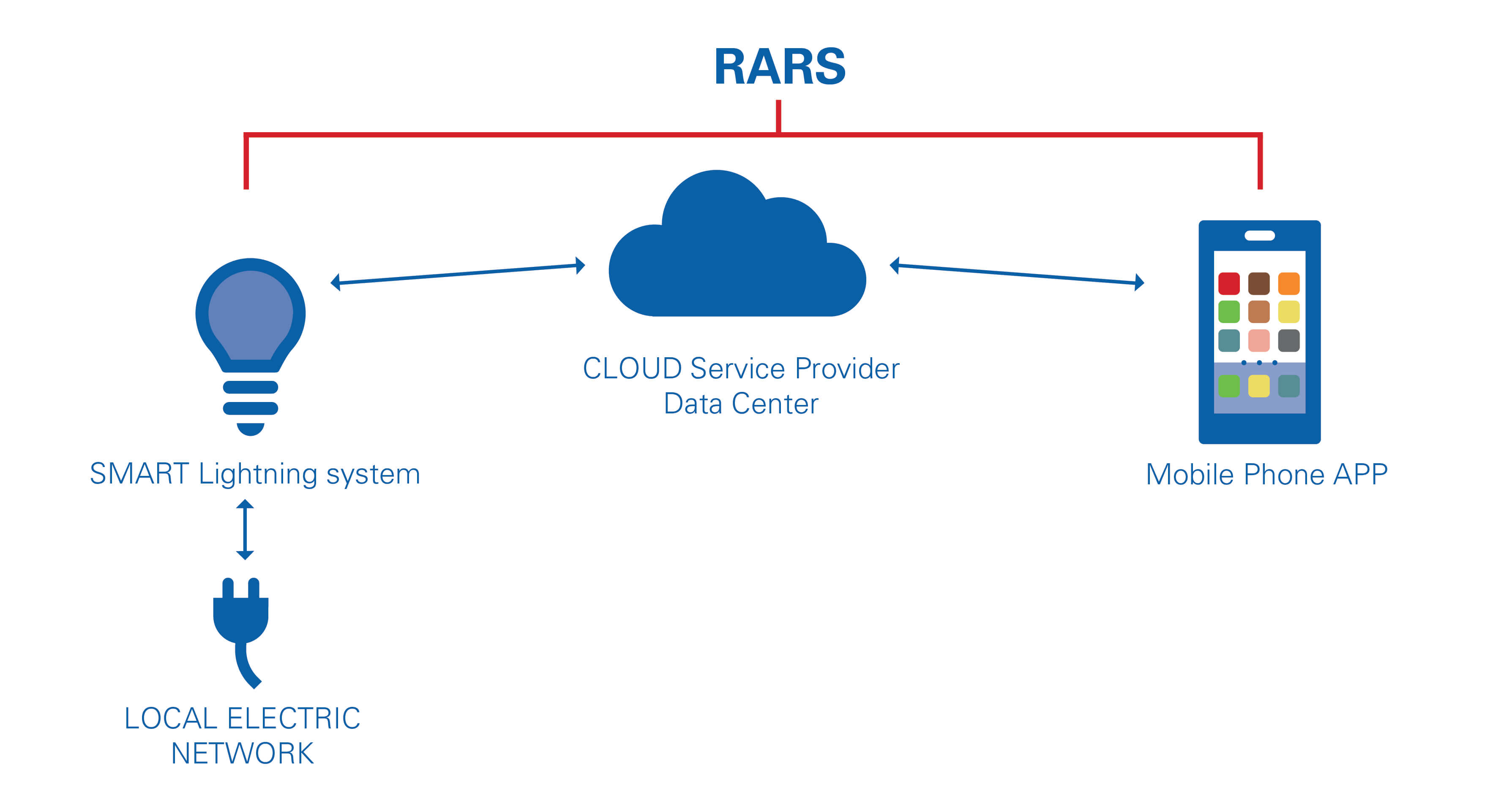By having all important parts of the chain tested according to the RARS scheme, manufacturers of remotely controlled systems that are connected to the internet can be assured that the chain of their product is basically cyber-secure. In the image below, we have indicated for a ‘smart lighting’ system which part of the chain is covered by the RARS scheme.