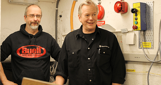 Att serva en paternosterhiss från femtiotalet är inte det lättaste, berättar Inspectas Åke Forsberg. Han berömmer Hissgruppens Lars Amgren och konsulten Mats Öberg, som ägnade drygt ett halvår på att göra hissen brukbar.