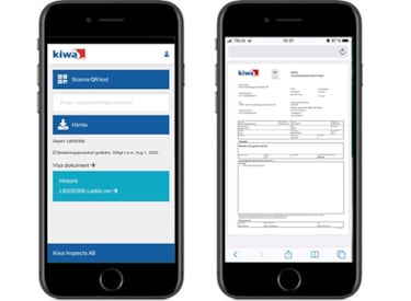 Kiwa Mobile Connect är en webbapp som gör det möjligt att se besiktningsstatus för din utrustning direkt i mobilen. Du som äger ett objekt som besiktigas av Kiwa kan själv styra vilken information som visas i kundportalen Q3web.